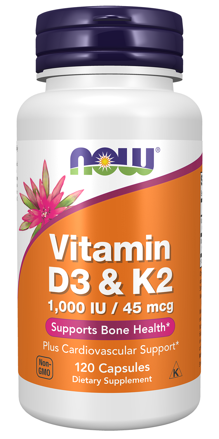 NOW combines two nutrients extensively researched for their contribution to the health of bones, teeth and the cardiovascular system.* Vitamin D-3 promotes calcium transport and absorption.* It may also play a role in proper insulin action and glucose metabolism and is critical to immune system function.* Vitamin K is necessary for the formation of healthy, strong bones.* Vitamin K plays a role in arterial health through its ability to support proper calcium metabolism in veins and arteries.* Vitamin K2 is an active and bioavailable form of vitamin K.*